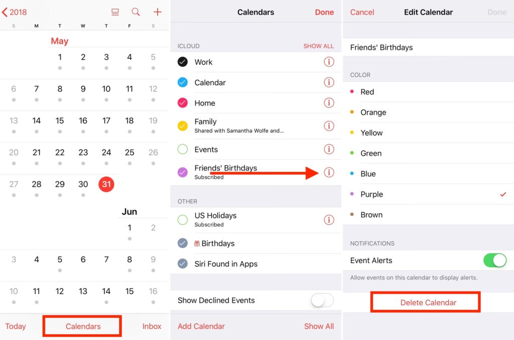 - Zobrazení kalendářů: V aplikaci Kalendář na iPhonu klepněte dole na „Kalendáře“ a ujistěte se, že je zaškrtnuto „Facebook události“.