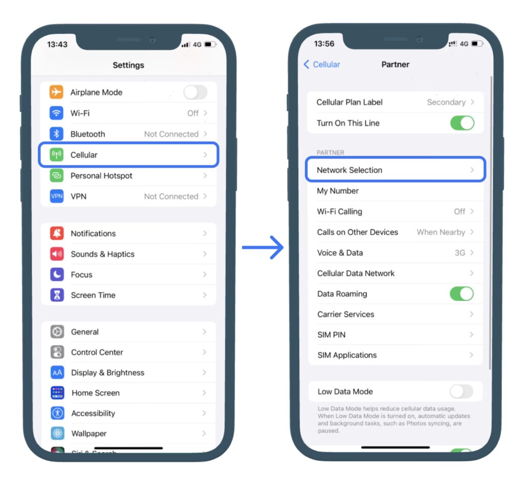 Uživatelé mohou ručně vyplnit nastavení APN navigací na jedno z následujících míst. Je důležité si uvědomit, že cesta k nastavení se může mírně lišit v závislosti na verzi operačního systému iOS, kterou váš iPhone používá.