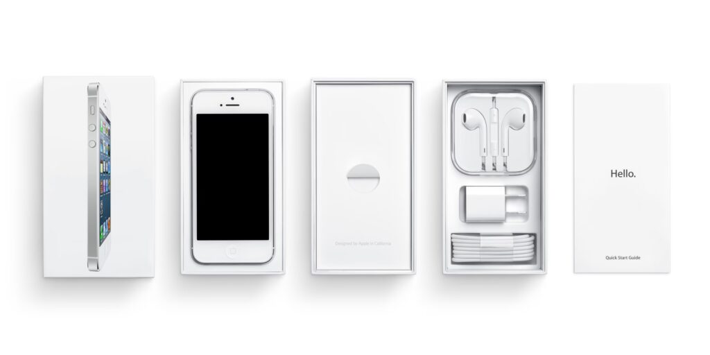 Pokud jde o design balení Apple, jejich krabice má minimalistický design v bílé barvě, převážně s obrázkem produktu vytištěným na krabici. Tyto obrázky jsou obvykle embosované pro vylepšený pocit, což znamená, že jsou mírně vyvýšené. Krabice Apple jsou navíc opatřeny nádherným matným povrchem, díky kterému vypadají luxusně. Rozsáhlé zkušenosti společnosti Apple s výrobou a balením znamenají bohaté znalosti v oblasti navrhování krabic. V důsledku toho jsou krabice Apple atraktivní a funkční, ale jsou také mimořádně pevné a staly se ikonickým příkladem v obalovém průmyslu. Apple věnoval spoustu úsilí designu krabic pro iPhone.