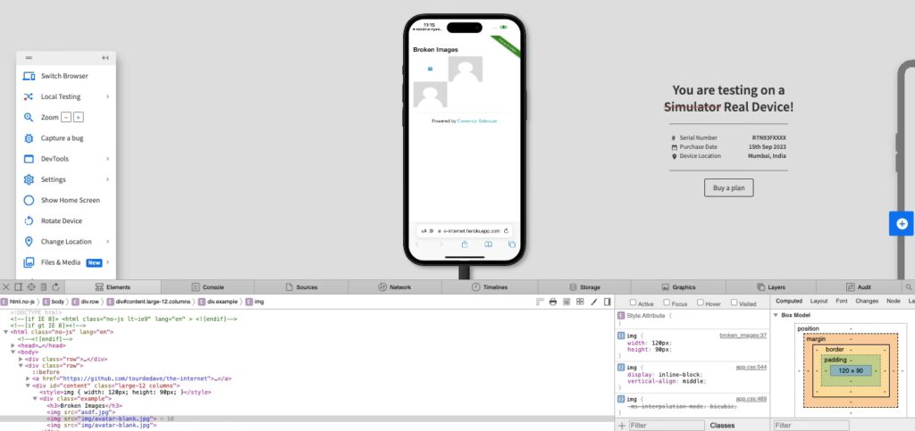 - Otevře se nové okno s vývojářskými nástroji Chrome (DevTools), které vám umožní ladit webovou stránku běžící na vašem iPhonu.