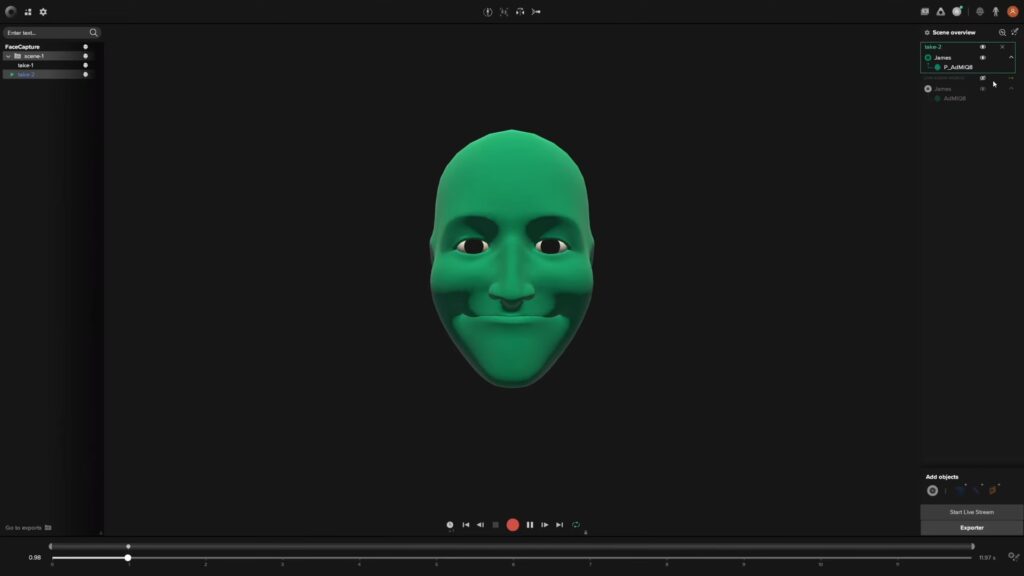 - ARKit Expressions: Využívá pokročilé blendshapy ARKit k zachycení detailních výrazů obličeje. To znamená, že animátoři mohou snadno zaznamenávat jemné pohyby obličeje, které mapují více než 50 obličejových svalů. Úsměv nebo zamračení se tak v animacích stává realističtějším.