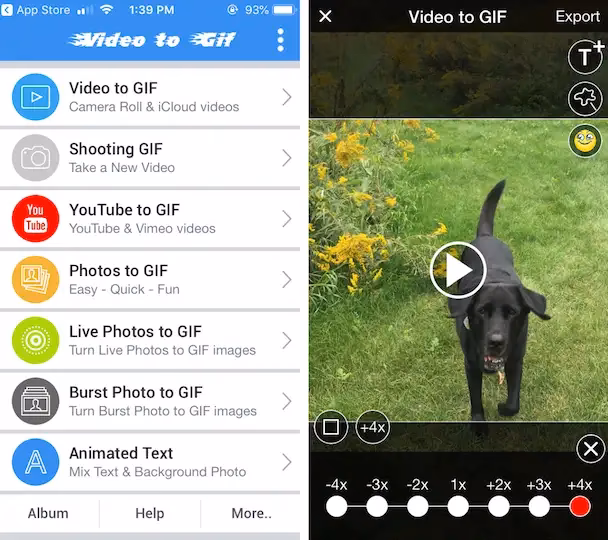 Aplikace usnadňuje převod existujících fotografií a videí na GIFy, které lze poté upravovat a ořezávat pomocí 14 předinstalovaných filtrů – a s možností stáhnout další efekty z obchodu.