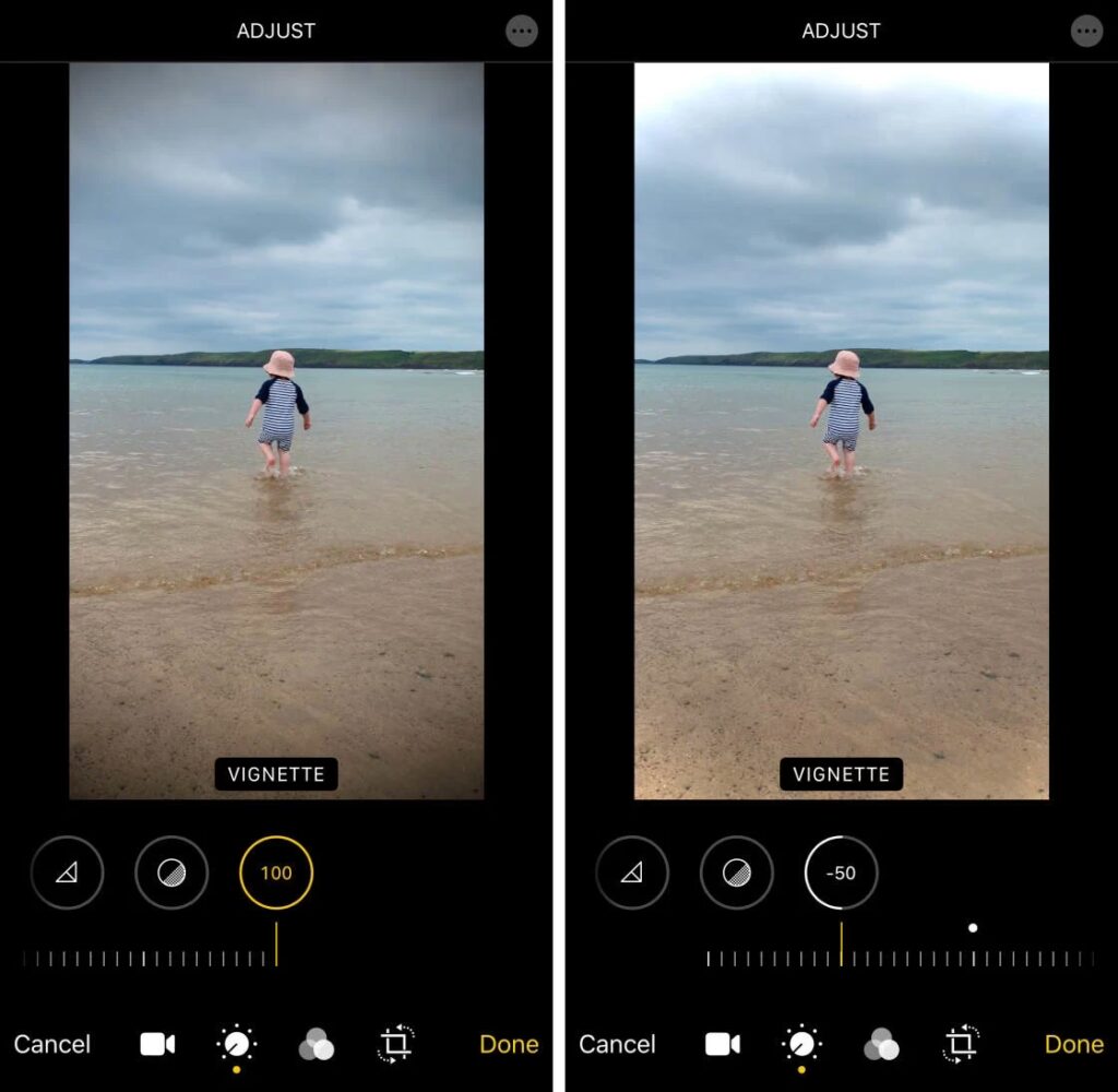 Jak jsme se již dříve dotkli, existuje řada video efektů a filtrů, které můžete aplikovat na videa natočená na iPhonu. Když vyberete video ve Fotkách a stisknete „Upravit“, měli byste vidět ikony „Úpravy“ a „Filtry“.