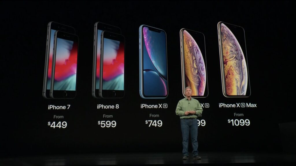 Když byl iPhone X v roce 2017 uveden na trh s cenou 999 dolarů za základní variantu, vyvolalo to diskuse o tom, zda jsou spotřebitelé ochotni zaplatit takovou částku za smartphone. Apple však s iPhone XS potvrdil, že se jedná o nový standard pro své vlajkové lodě. Základní model iPhone XS (64GB) se začal prodávat za stejnou cenu jako iPhone X – tedy 999 dolarů. Skutečnou novinkou byl iPhone XS Max s větším 6,5palcovým displejem, který tuto cenovou hranici překročil. Základní model Max s 64GB úložištěm stál 1099 dolarů.