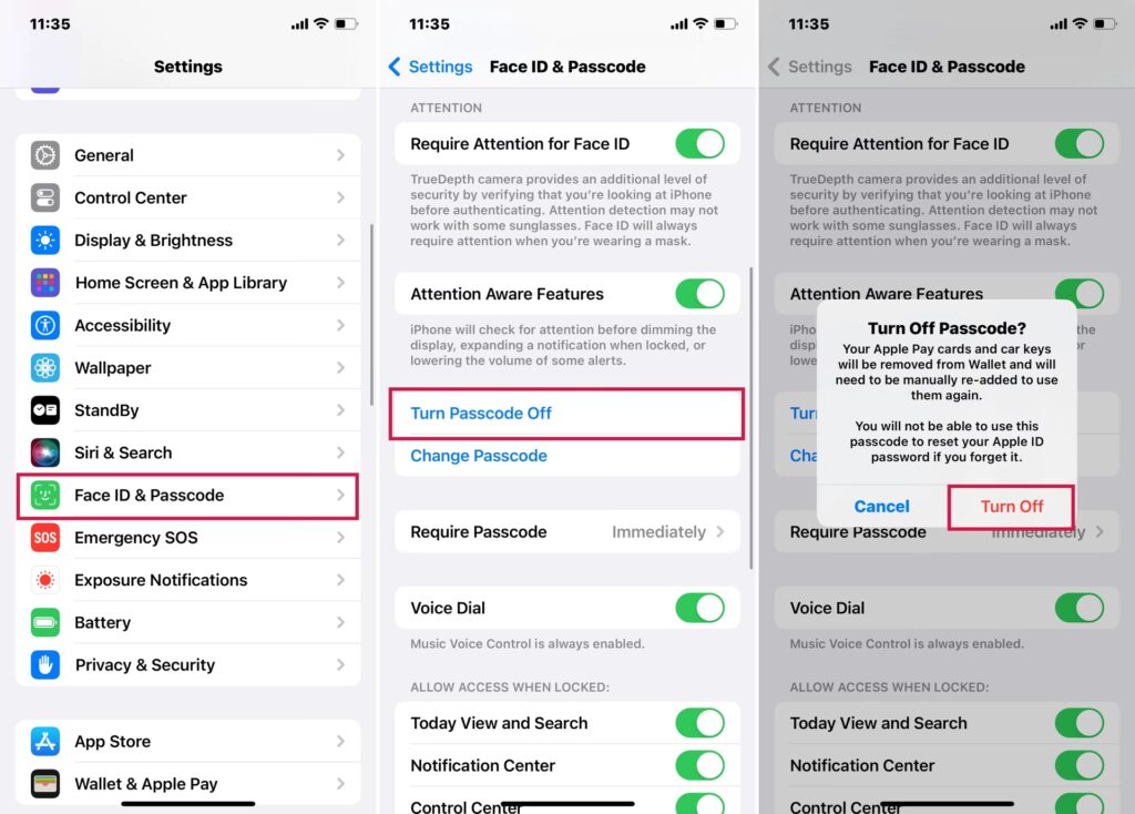 - Nastavte Face ID nebo Touch ID: Tyto biometrické metody jsou rychlé a bezpečné. Stále však budete potřebovat heslo jako záložní metodu.