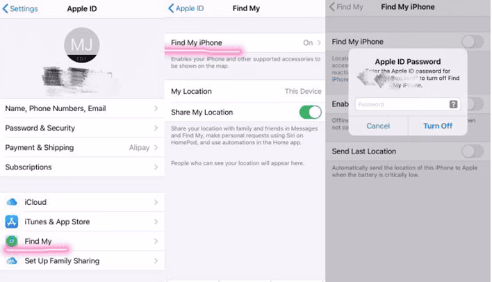 - Ujistěte se, že je zapnuto Najít Můj iPhone.