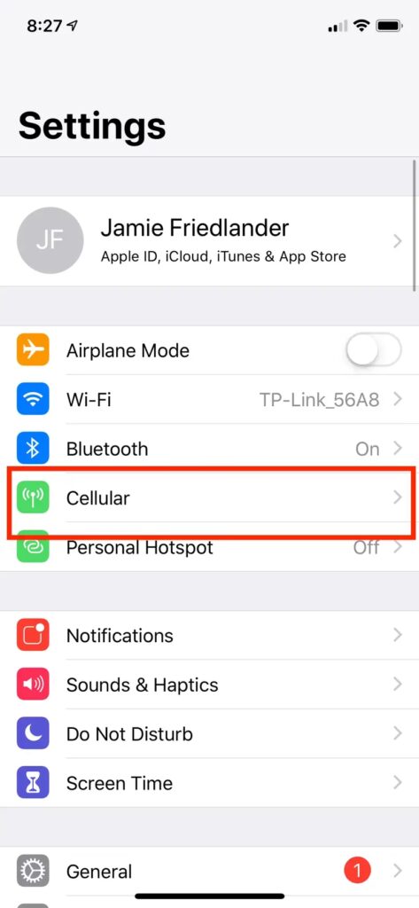- Klepněte na „Volby mobilních dat“.