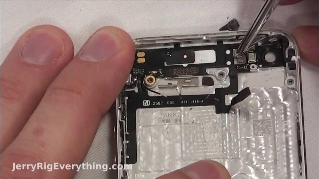 Pokud je kovový kontakt na vašem tlačítku napájení stále neporušený, problém je v samotném flex kabelu tlačítka napájení. Naštěstí v 99,9 % případů je kabel v pořádku, ale malá černá tečka, která se nachází uprostřed flexu tlačítka napájení, odpadla. To zase způsobí, že se tlačítko správně nestlačuje.
