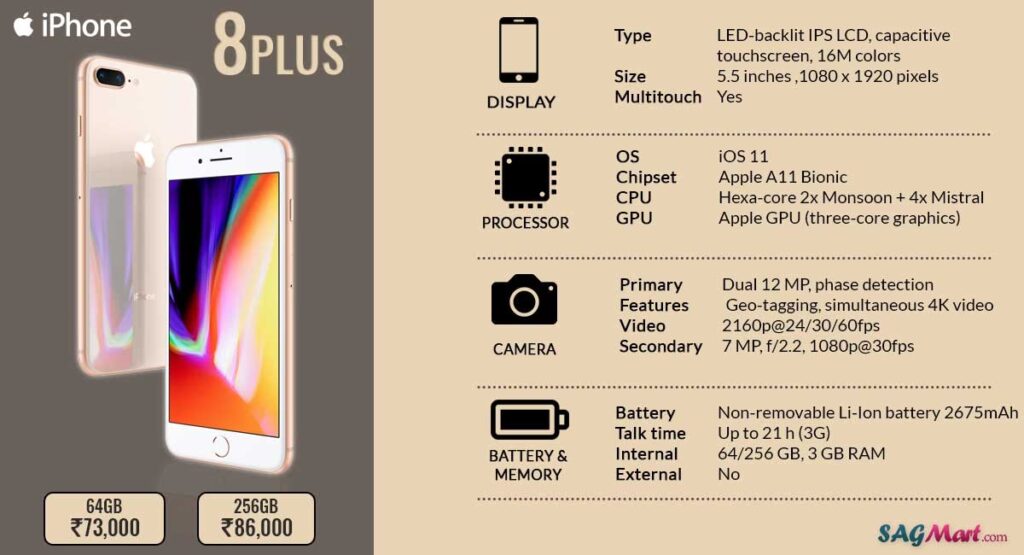 iPhone 8 Plus je poháněn čipem A11 Bionic s Neural Enginem. Tento šestijádrový procesor byl v době svého uvedení na trh jedním z nejvýkonnějších mobilních čipů na světě. Nabízí dvě vysoce výkonná jádra, která jsou o 25 % rychlejší než jádra v čipu A10 Fusion (použitém v iPhone 7), a čtyři úsporná jádra, která jsou o 70 % rychlejší. Neural Engine je speciální hardware navržený pro strojové učení, což je klíčové pro funkce jako Face ID (ačkoliv iPhone 8 Plus má Touch ID, Neural Engine pomáhá s pokročilými funkcemi fotoaparátu a rozšířené reality) a další pokročilé algoritmy. Díky A11 Bionic je iPhone 8 Plus výrazně rychlejší, plynulejší a lépe připravený na budoucí aplikace a hry náročné na výkon. Spouštění aplikací, multitasking a práce s náročnými grafickými aplikacemi je na iPhone 8 Plus výrazně svižnější.