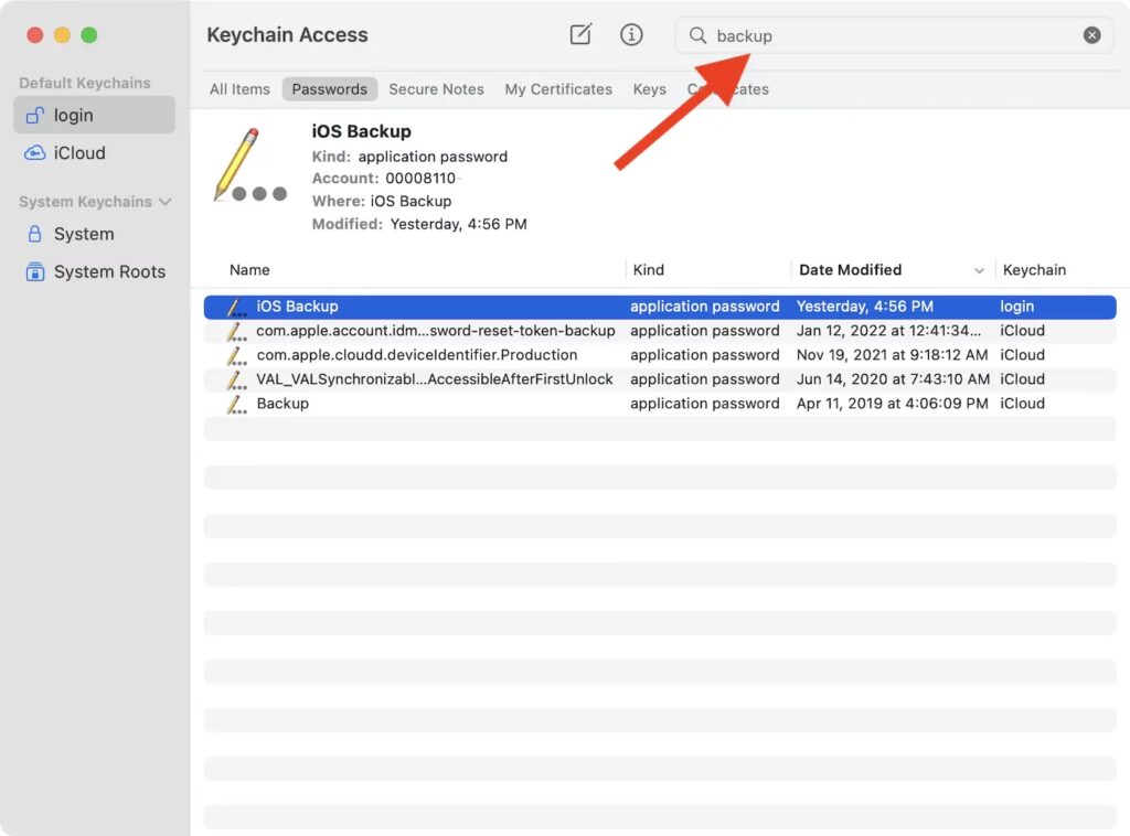 Pokud používáte Mac, vaše heslo pro zálohu může být uloženo v Klíčence macOS. Postup, jak ho najít: