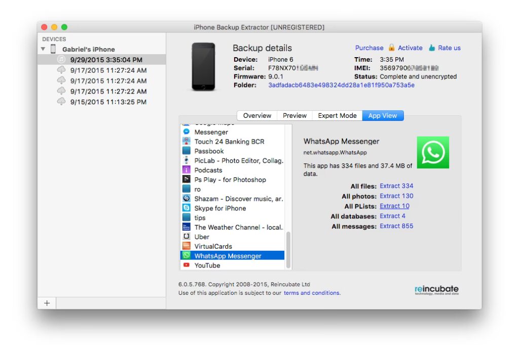 Další dobrou volbou prohlížeče a extraktoru záloh iPhonu je iBackup Extractor. Dokáže najít všechny zálohy iPhonu, iPodu Touch a iPadu na vašem počítači a umožní vám snadno obnovit soubory. S iBackup Extractor můžete extrahovat iMessages, protokoly hovorů, záložky, kalendáře a další data z iTunes zálohy.