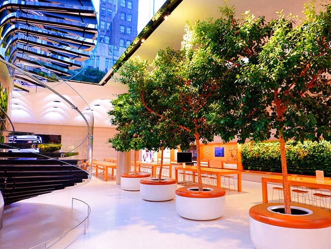 - Apple World Trade Center Oculus: Moderní a architektonicky působivý obchod v rámci nákupního centra Oculus. Skvělé pro ty, kteří se pohybují v oblasti Financial District.