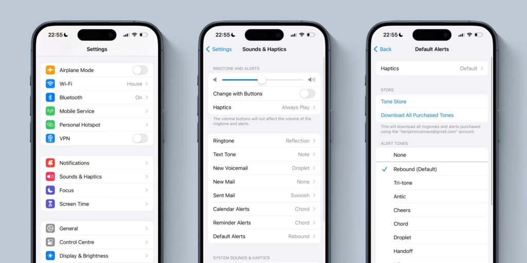 - Hlasitost: Zkontrolujte úroveň hlasitosti vyzvánění a upozornění. Můžete to udělat v Nastavení > Zvuky a haptika a posuvníkem Hlasitost vyzvánění a upozornění. Také zkuste zvýšit hlasitost pomocí tlačítek na boku iPhonu, když je obrazovka zapnutá, a ujistěte se, že se nezobrazuje ikona sluchátek (což by znamenalo, že zvuk je směřován do připojených sluchátek).