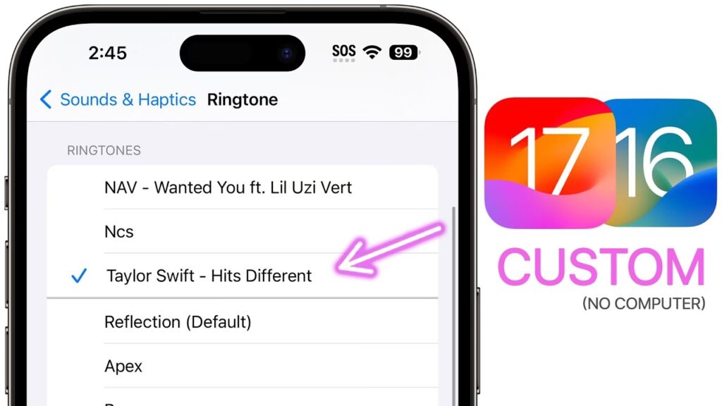 - Najděte své nové vyzvánění: V horní části seznamu dostupných vyzvánění byste měli vidět vaše nově vytvořené vyzvánění pod názvem, který jste mu dali v aplikaci pro tvorbu vyzvánění (nebo v GarageBand). Klepněte na něj, abyste ho vybrali. Jakmile na něj klepnete, automaticky se nastaví a přehraje se jeho náhled.