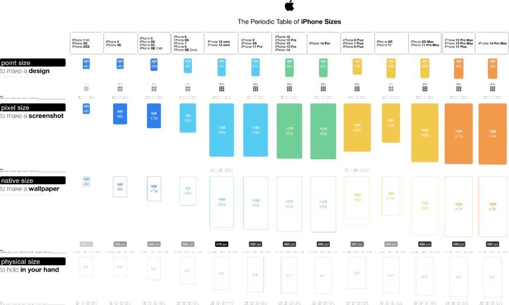 - Tabulka: Vývoj velikostí a rozlišení displejů iPhone