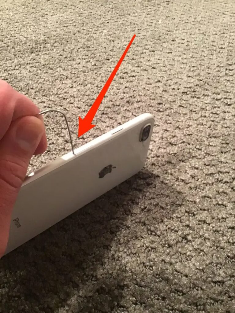 - Použijte světlo: Držte telefon v úhlu, který umožňuje obrazovce směřovat dolů. Použijte baterku (například z jiného telefonu nebo malou ruční baterku), abyste osvítili vnitřek slotu pro SIM kartu.