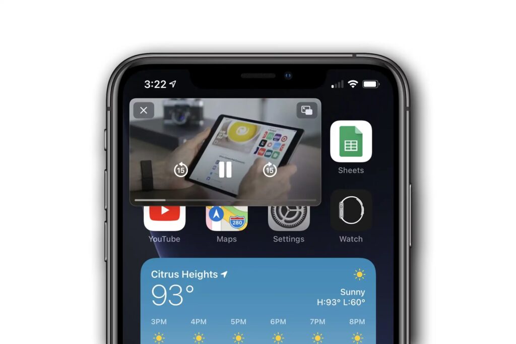 Jakmile vstoupíte do režimu PiP, video se zmenší do menšího překryvného okna v rohu obrazovky. Můžete tak pokračovat ve sledování videa PiP a zároveň mít plný přístup ke všem ostatním funkcím vašeho iPhonu.