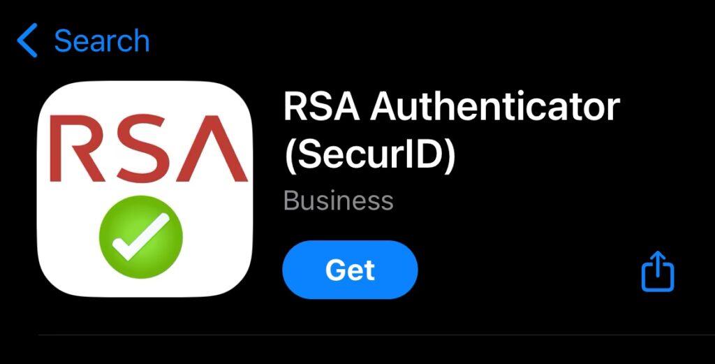 - Vyberte a nainstalujte: Ve výsledcích vyhledávání by se měla objevit oficiální aplikace RSA SecurID nebo RSA Authenticator (obvykle s ikonou RSA). Klepněte na ni, abyste se dostali na stránku s podrobnostmi o aplikaci. Zde klepněte na tlačítko "Získat" nebo ikonu cloudu se šipkou dolů (pokud jste aplikaci již dříve stáhli).