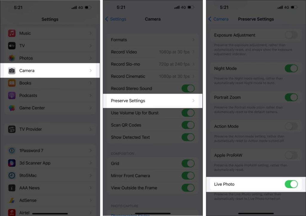 If you don’t want to use Silent Mode to disable the camera shutter sound on your iPhone, you can enable Live Photos. When you take a Live Photo, your iPhone doesn’t make a shutter sound to avoid capturing the camera audio in the Live Photo you capture. Here’s how you can enable Live Photos to disable the camera shutter audio.